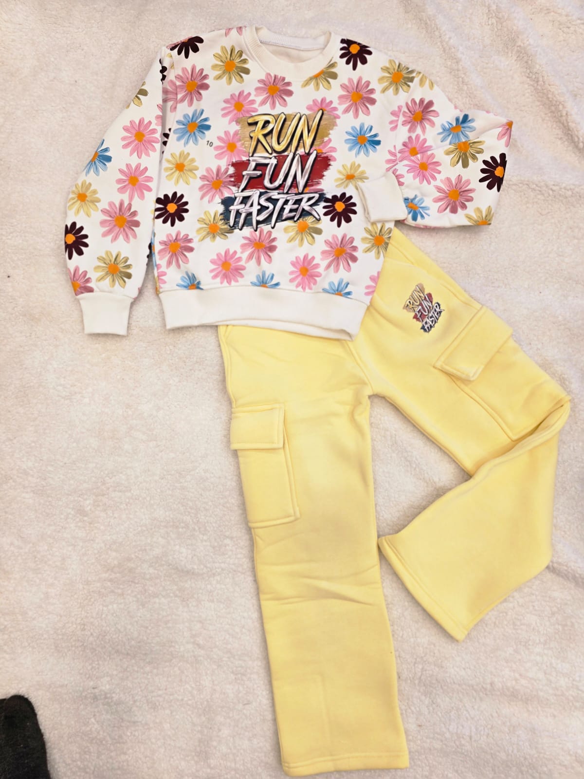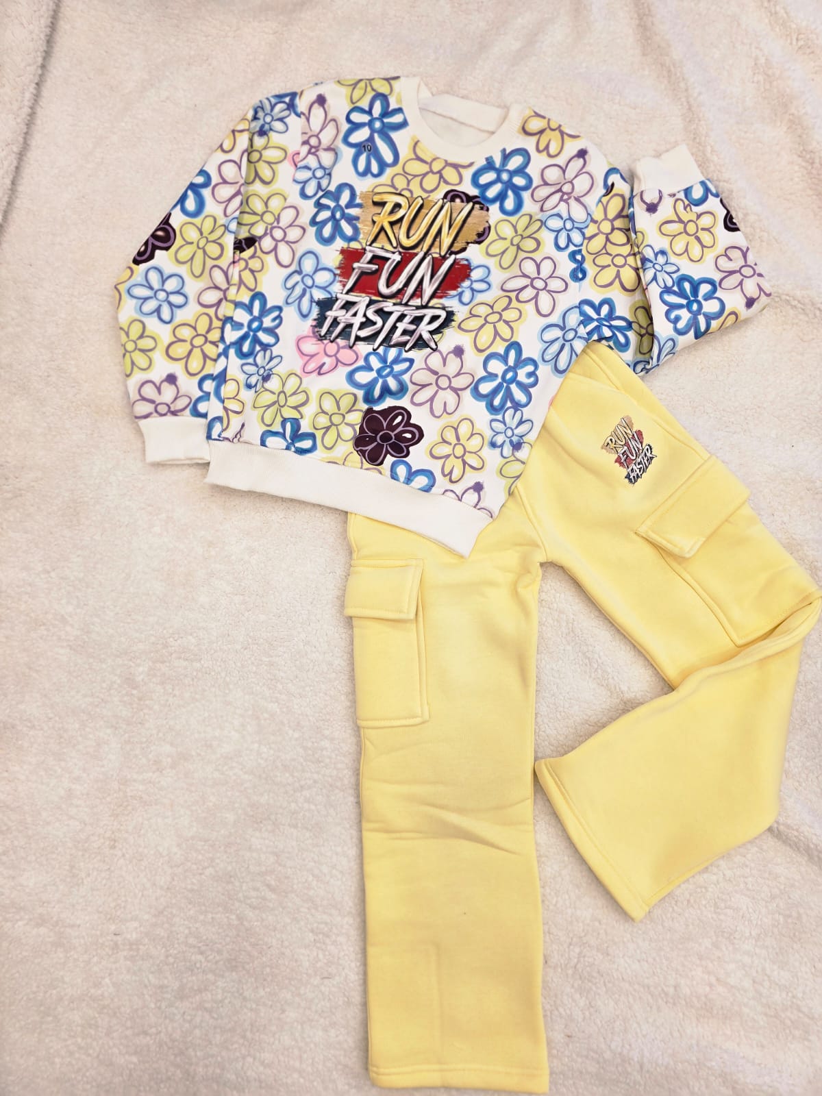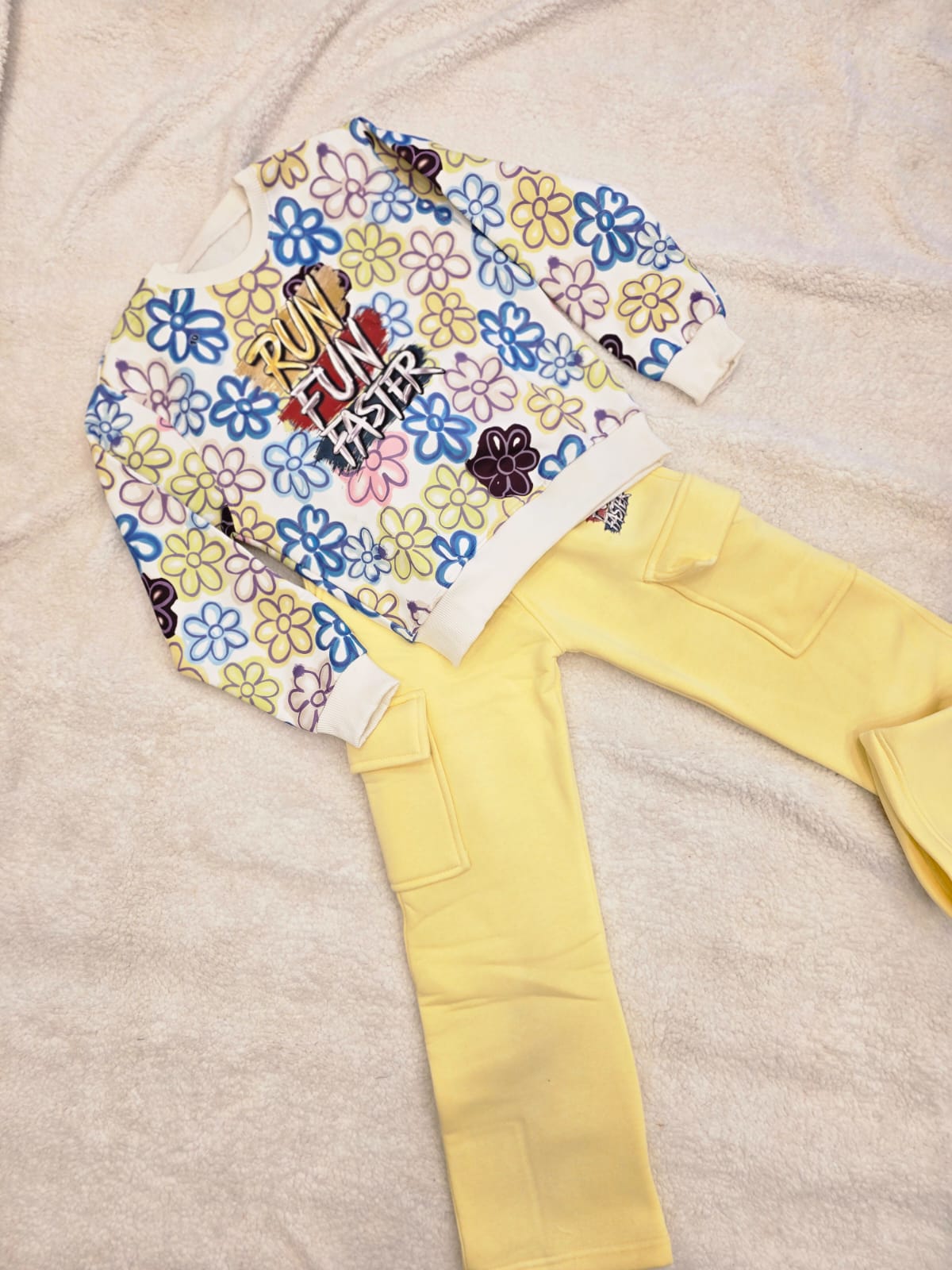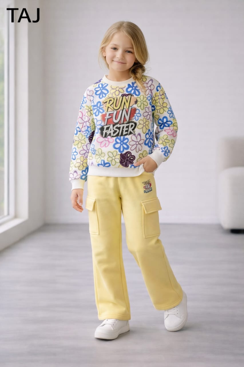 طقم بنطلون وسويت شيرت أطفال بناتي اصفر