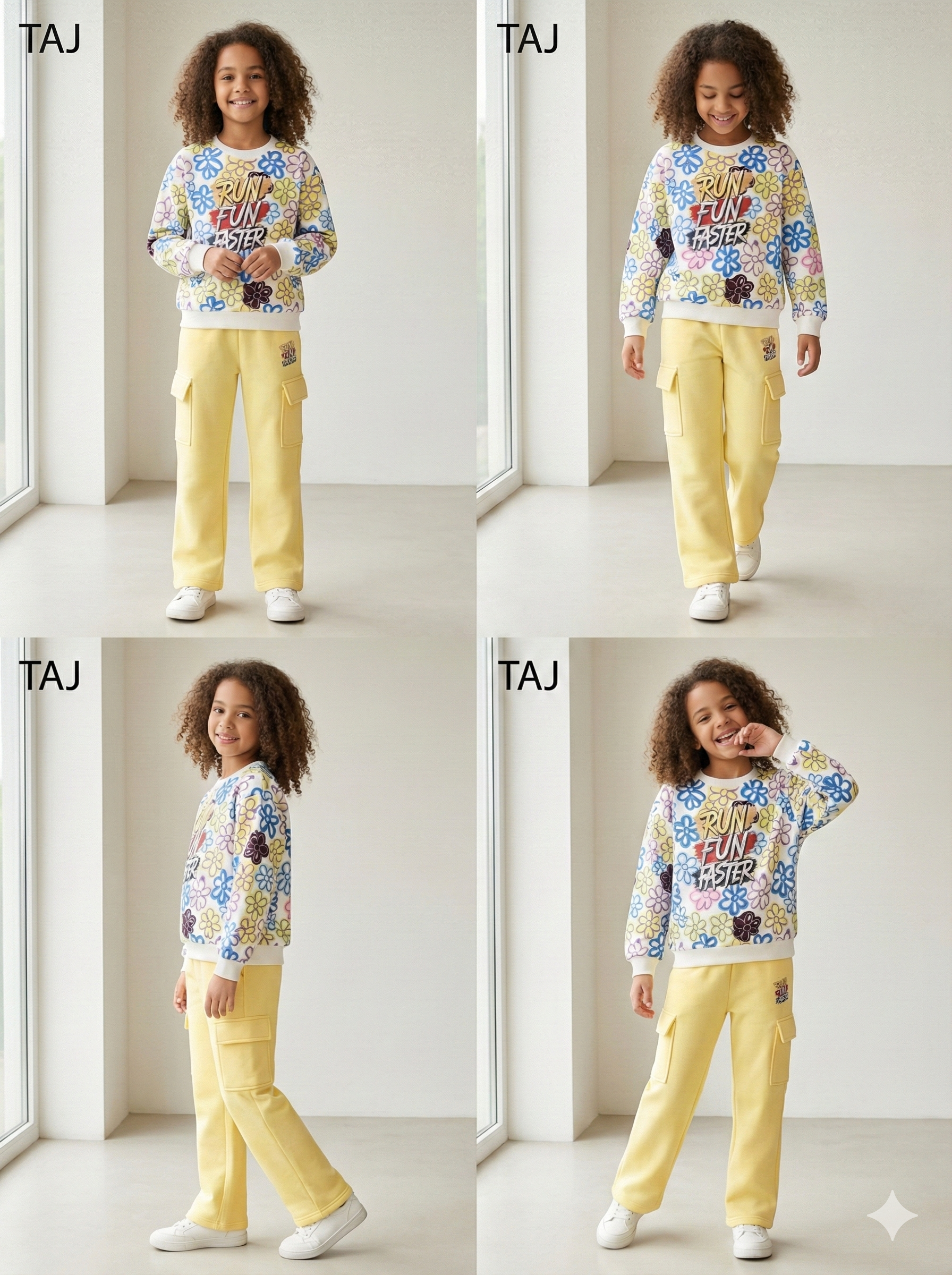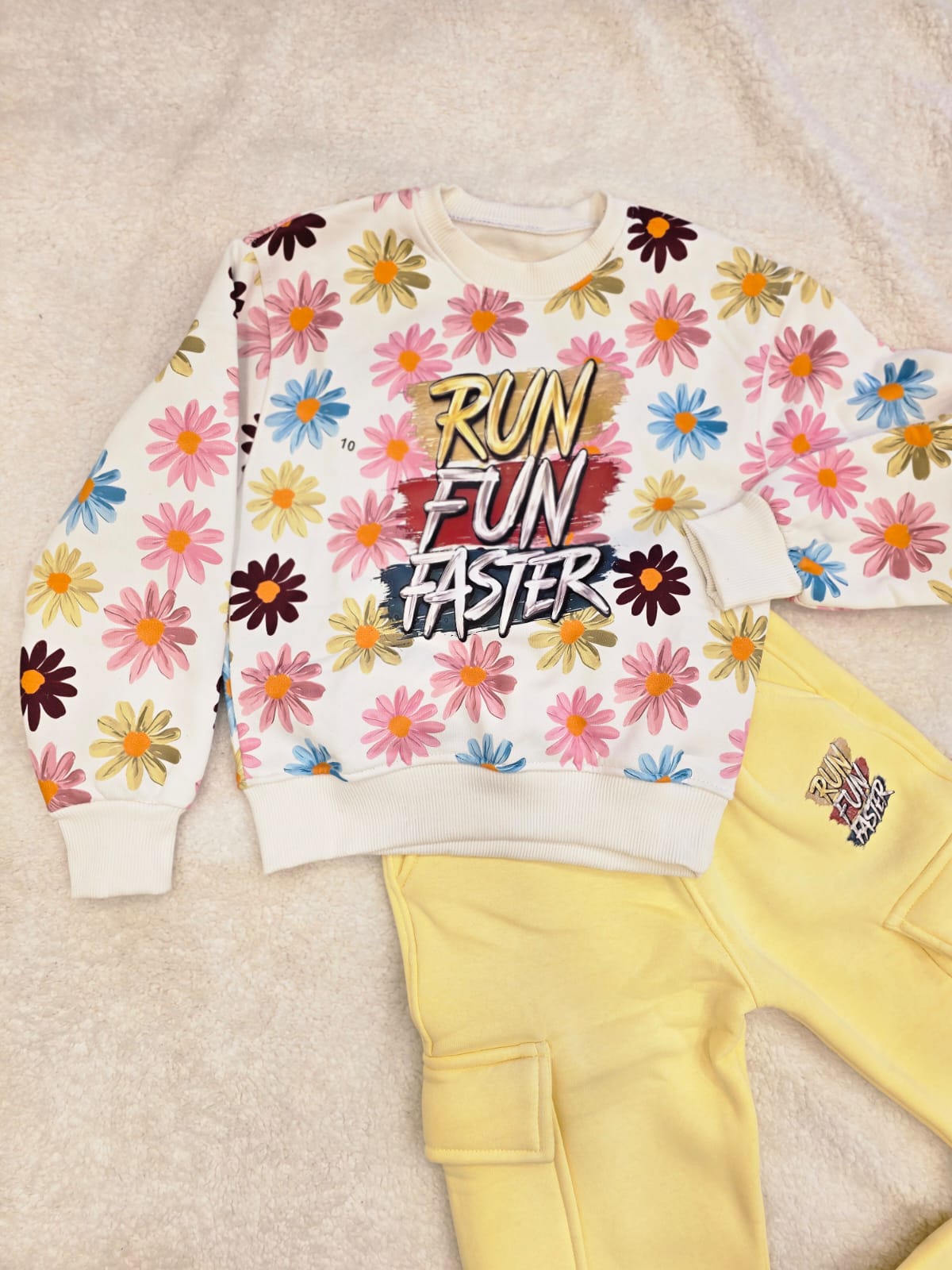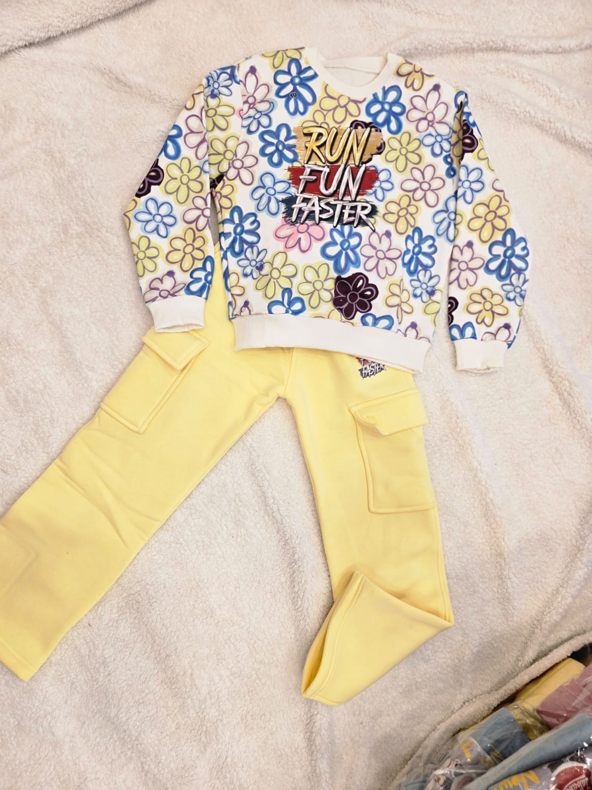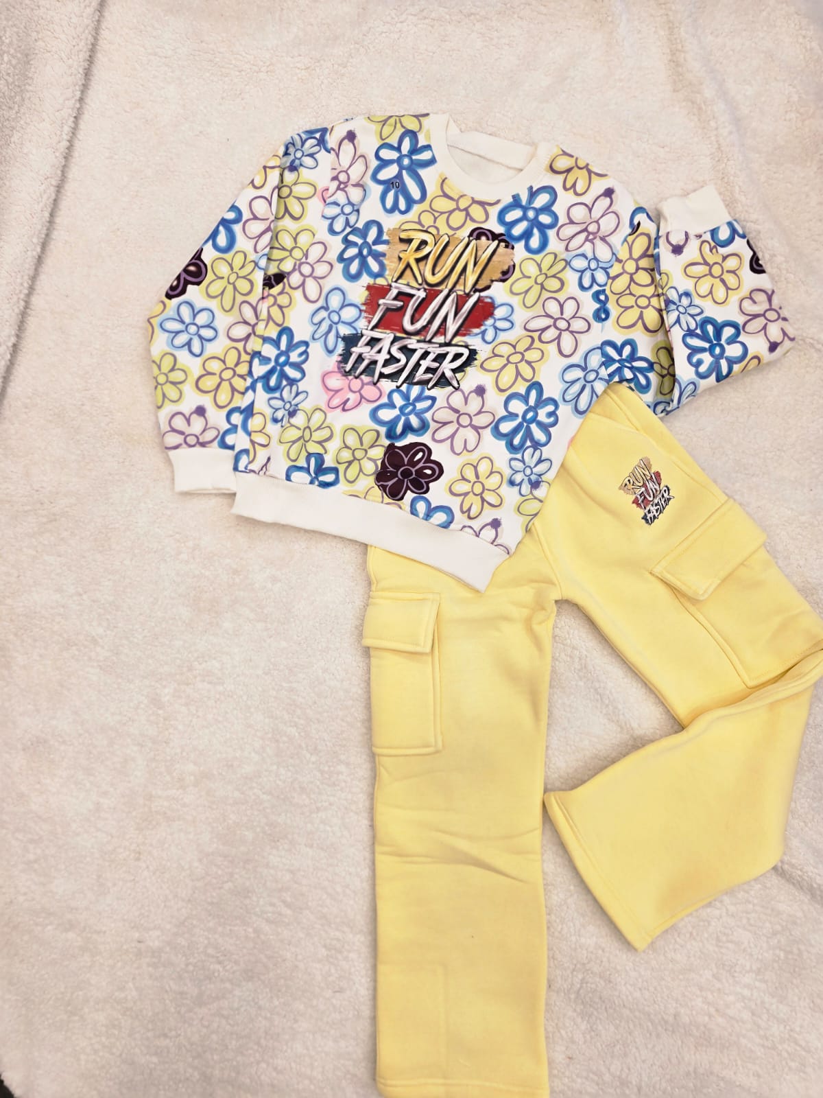 طقم بنطلون وسويت شيرت أطفال بناتي اصفر